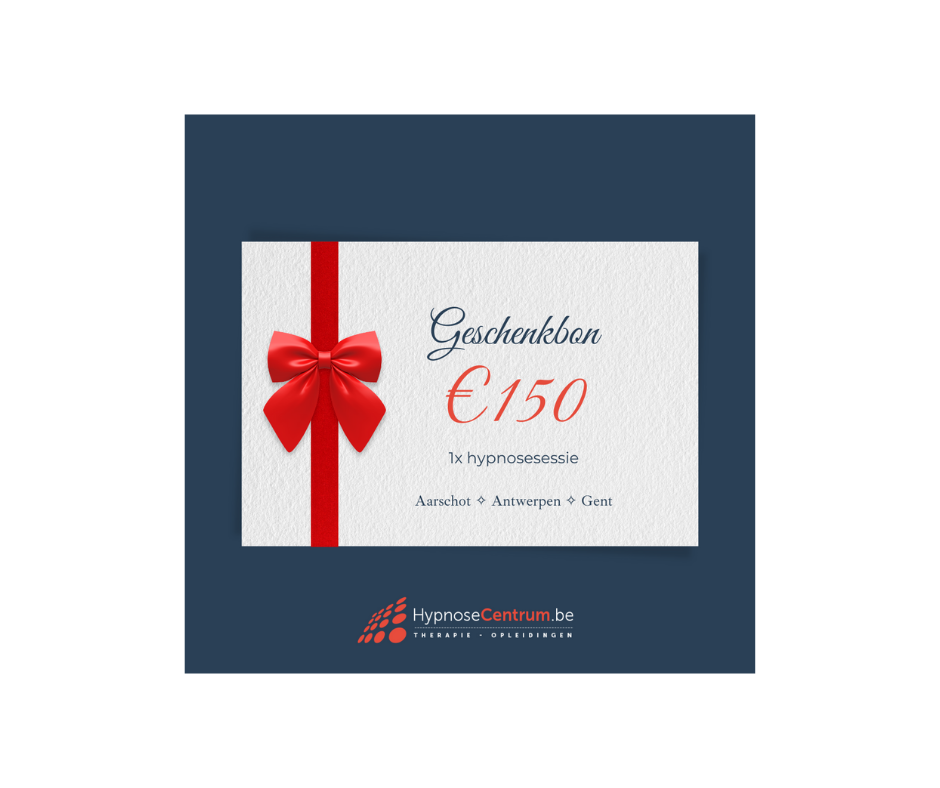 Wil je iemand een hypnosesessie cadeau doen. Wil je iemand motiveren om een bepaalde stap in zijn of haar leven te zetten en kan een hypnosesessie daarbij helpen. Dan is onze geschenkbon de ideale oplossing. Elke geschenkbon heeft de waarde van €150 euro. De prijs van één hypnosesessie.
